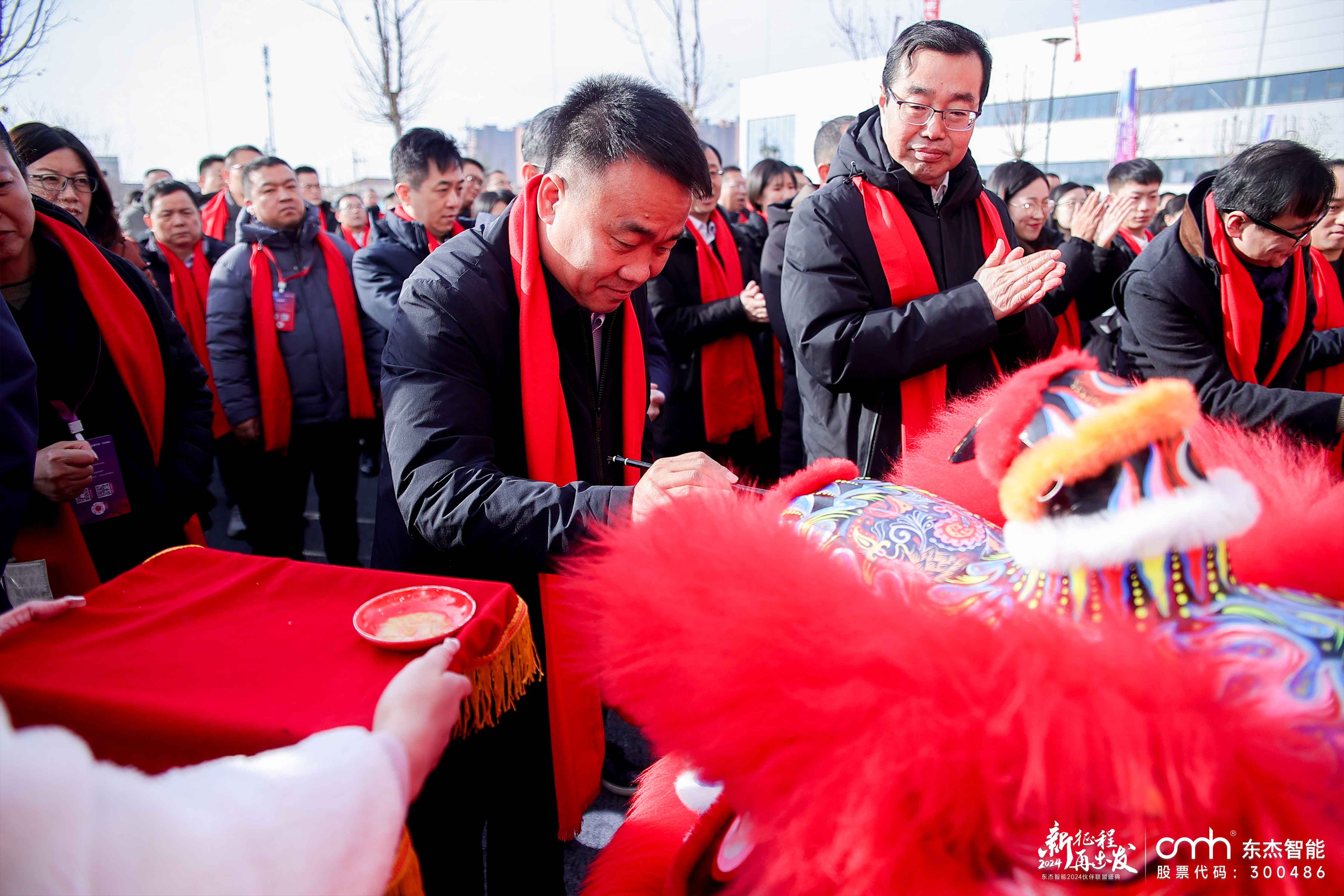 慶典上,東杰智能董事長婁剛董事長與東杰智能總經(jīng)理王振國一同為象征著吉祥好運的瑞獅點睛,象征著公司開啟新篇章的吉祥和活力。隨著瑞獅的舞蹈,現(xiàn)場洋溢著喜慶氣氛,預(yù)示著公司在未來將如瑞獅般充滿活力和力量。