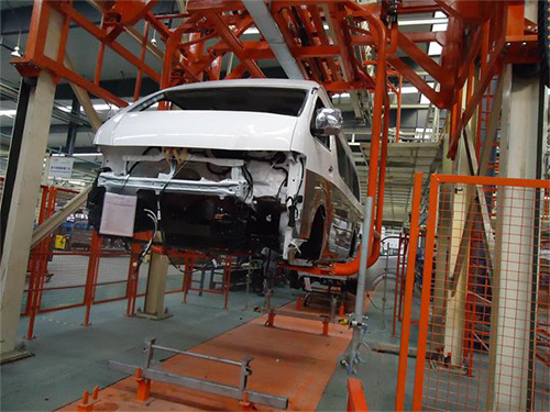 The assembly line includes: interior assembly lines for load-bearing or non-loaded models, chassis assembly lines, final assembly lines, and corresponding lifting, turning and turning facilities for the production line.